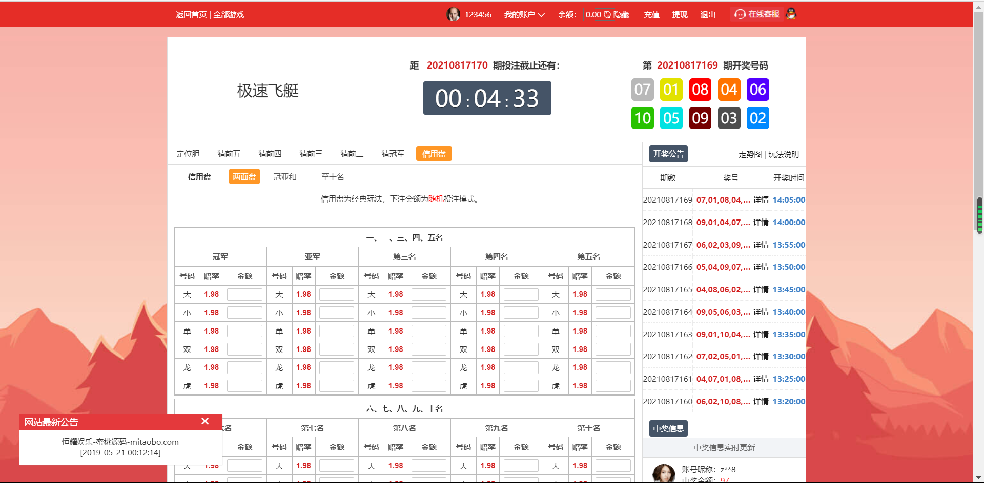 海南玩法信用盘七星彩玩法带快打字定带系统彩风控天恒二开源码...¥800.00